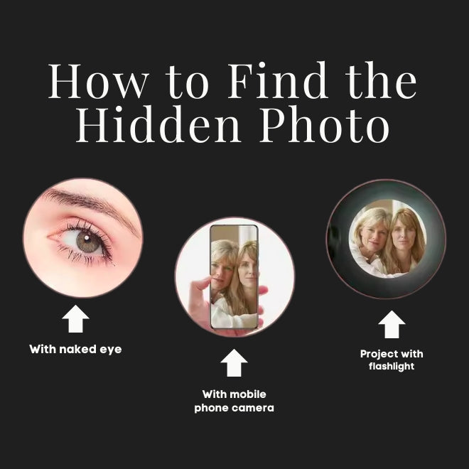A delicate heart-shaped necklace in rose gold or silver with a timeless, elegant design. Inside, a hidden lens reveals a special image of you and your mother.